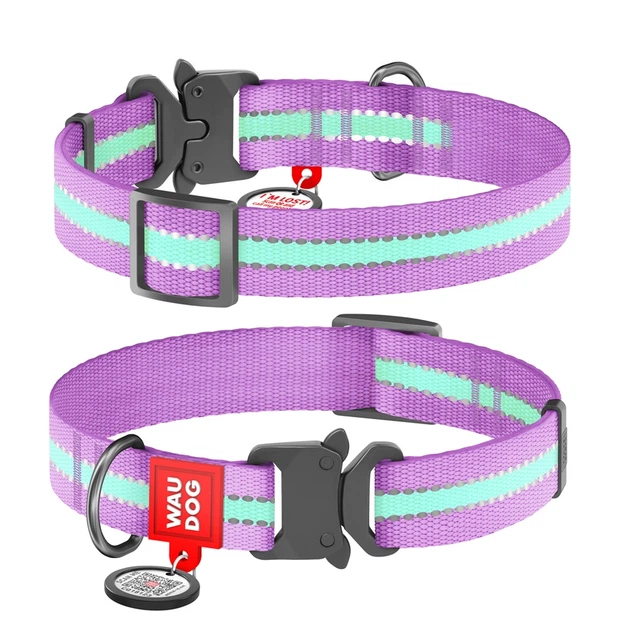 Нашийник для собак водостійкий WAUDOG Magnet з QR паспортом, магнітна пряжка-фастекс, тіффані, розмір L