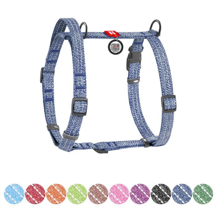 Шлея для собак WAUDOG Н-подібна Re-cotton з QR паспортом, світловідбивна M синій (259212) 259212
