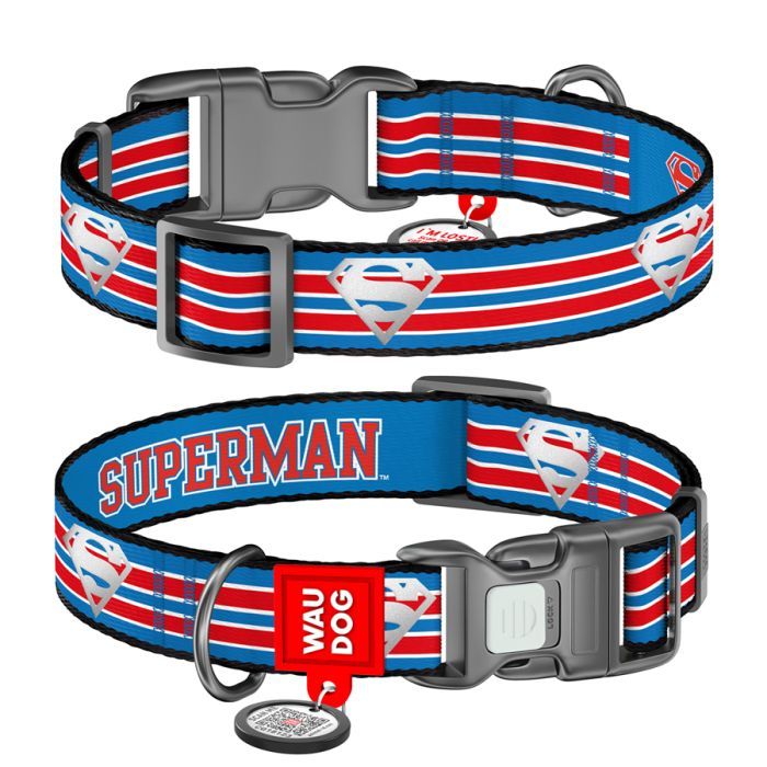 Нашийник для тварин WAUDOG Nylon з QR паспортом "Супермен Ретро", пластиковий фастекс, XL (283-1082) 283-1082