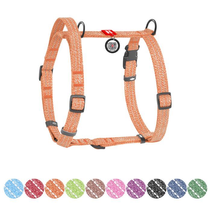Шлея для собак WAUDOG Н-подібна Re-cotton з QR паспортом, світловідбивна M помаранчева (25924) 25924