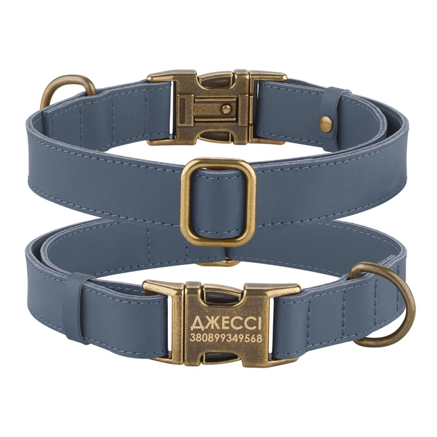 Нашийник для Собак Шкіряний з Металевою Античною Пряжкою BronzeDog Antiq Блакитний 25 мм 43-66 см (590422)