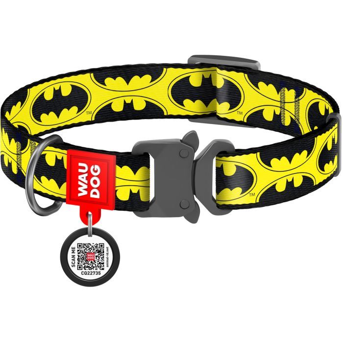 Нашийник для тварин WAUDOG Nylon з QR-паспортом "Бетмен Яскравий" металічна пряжка-фастекс XL (0026-2003) 0026-2003