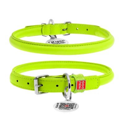 Нашийник для тварин WAUDOG Glamour з QR паспортом, круглий, XL салатовий (35315)