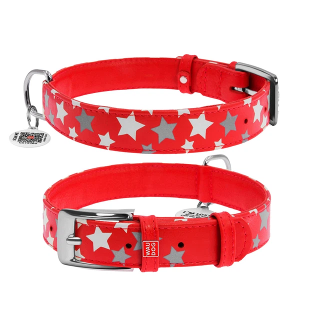 Нашийник для собак шкіряний WAUDOG Glamour візерунок Зірочка світиться/світловідбивний Ш 20 мм Дл 30-39 см червоний