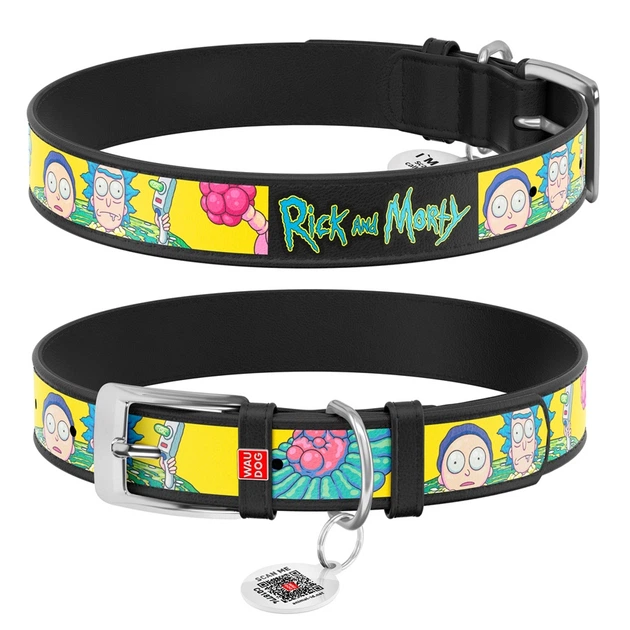 Нашийник для собак шкіряний WAUDOG Design з QR паспортом Рік та Морті 2 L 38-49 см х 25 мм Чорний (3605-0281-01)