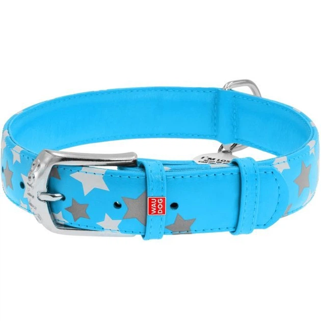 Нашийник для тварин WAUDOG Glamour з QR паспортом "Зірочка" XS Ш 15 мм Д 27-36 см блакитний (35852)