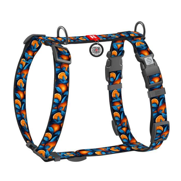 Шлея для собак WAUDOG Nylon анатомічна H-подібна з QR-паспортом "Апельсини" пластиковий фастекс, L (345-4054) 345-4054