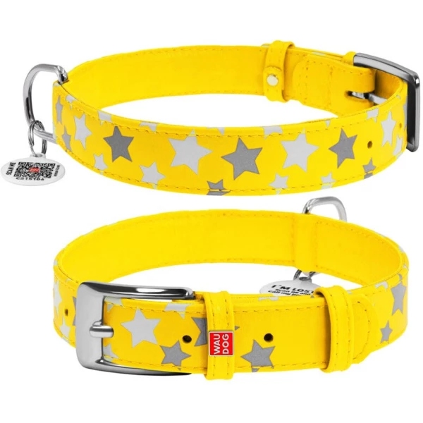 Нашийник для тварин WAUDOG Glamour з QR-паспортом "Зірочка" M Ш 25 мм Д 38-49 см жовтий (35878) 35878