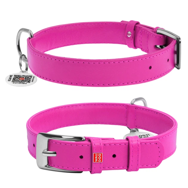Нашийник для собак шкіряний WAUDOG Glamour з QR паспортом, без прикрас, L, Ш 25 мм, Дов 38-49 см фіолетовий