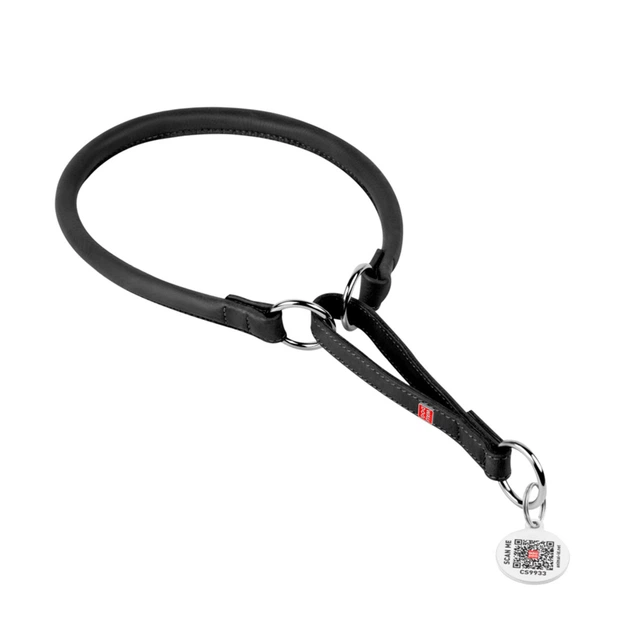 Нашийник-зашморг для собак шкіряний WAUDOG Soft з QR паспортом, круглий, Д 13 мм, Дов 61-70 см чорний