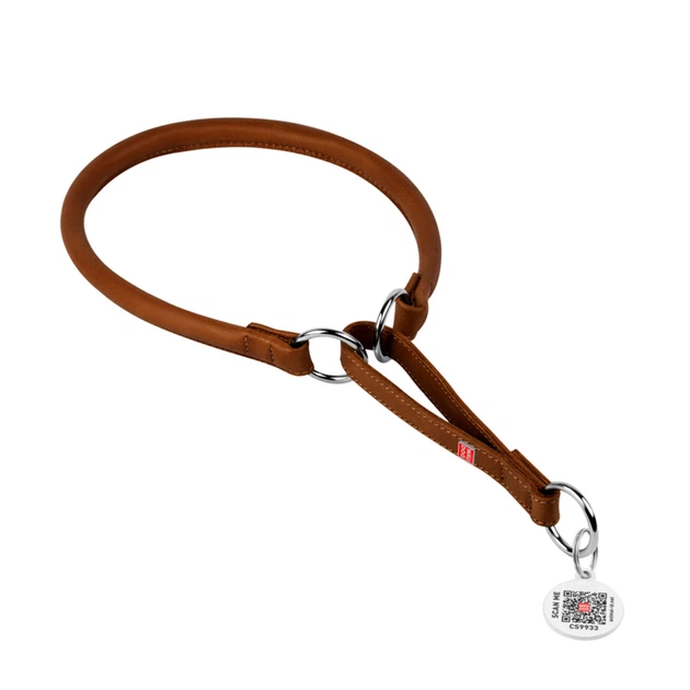 Ошейник-зашморг для собак шкіряний WAUDOG Soft з QR паспортом, круглий, Д 13 мм, Дов 61-70 см коричневий