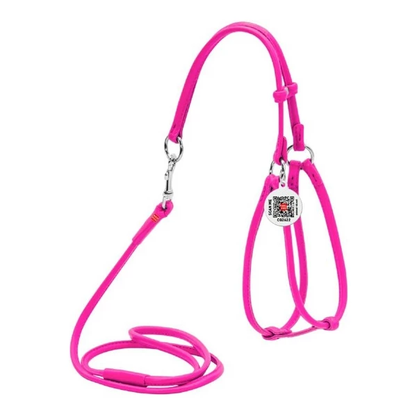 Шлея з повідцем для собак шкіряна WAUDOG Glamour c QR паспортом, кругла, Д 6 мм, А 26-46 см, 30-50 см рожевий(4820152566003)