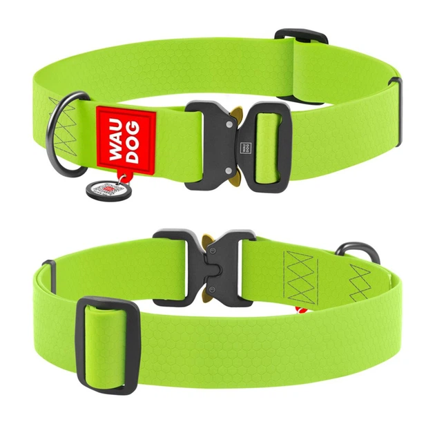 Нашийник для собак водостійкий WAUDOG Waterproof c QR паспортом, металічна пряжка-фастекс, Ш 40 мм, Дов 46-70 см, салатовий