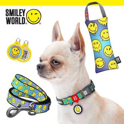 Набір для собак WAUDOG (нашийник + повідець + м’яка іграшка + QR-адресник), дизайн «Смайли на блакитному», розмір S, ширина