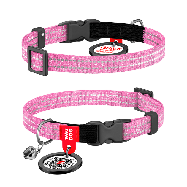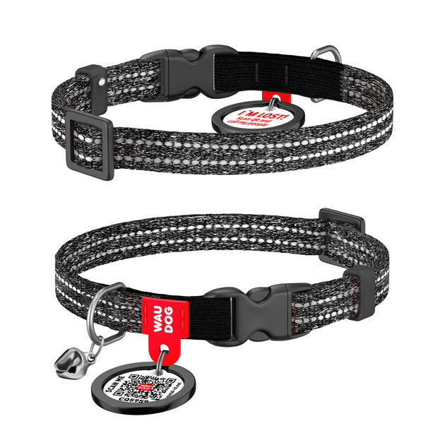 Нашийник для котів з відновленої бавовни WAUDOG Re-cotton з QR паспортом, світловідбивний, пластиковий фастекс, розмір XS, ш