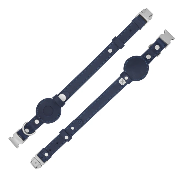 Шкіряний нашийник для собак з тримачем під AirTag зі швидким скиданням Gmakin Синій M
