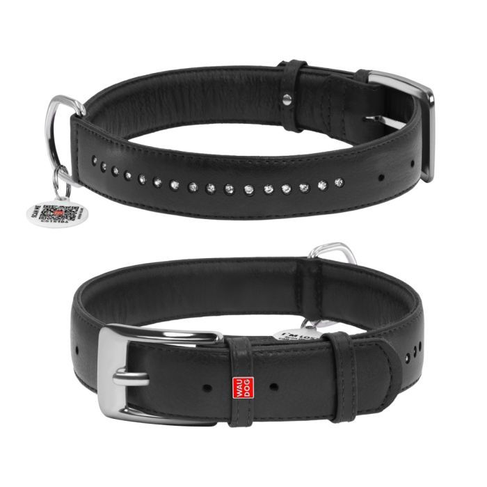 Нашийник для тварин WAUDOG Glamour з QR-паспортом, подвійний Ш 25 мм Д 38-49 см чорний (38781) 38781