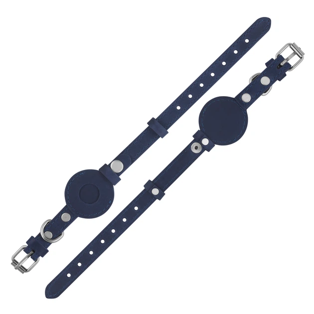 Шкіряний нашийник для собак з тримачем під AirTag зі швидким скиданням Gmakin Синій S