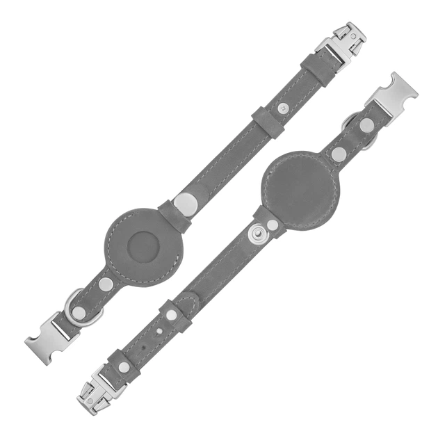 Шкіряний нашийник для собак з тримачем під AirTag Gmakin Сірий XL