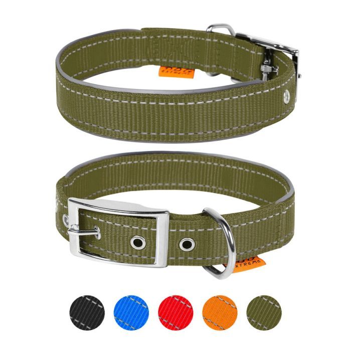Нашийник для тварин Dog Extreme подвійний зі світловідбиваючою вставкою Ш 40 мм Д 60-72 см хакі (645431) 645431