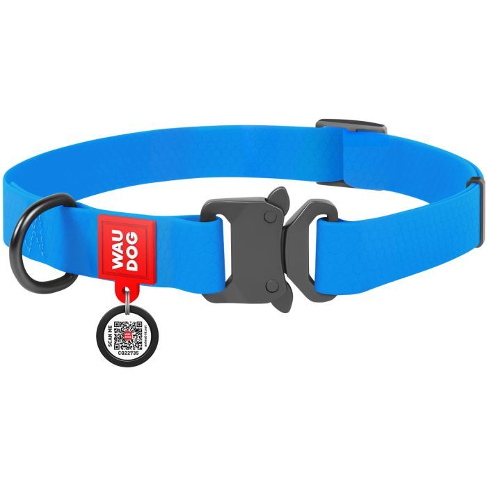 Матеріал - колартекс, Ширина - 25 мм, Довжина - 31-49 см, водостійкий, наявність «розумного» адресника з QR паспортом, для середніх порід собак, Колір - блакитний