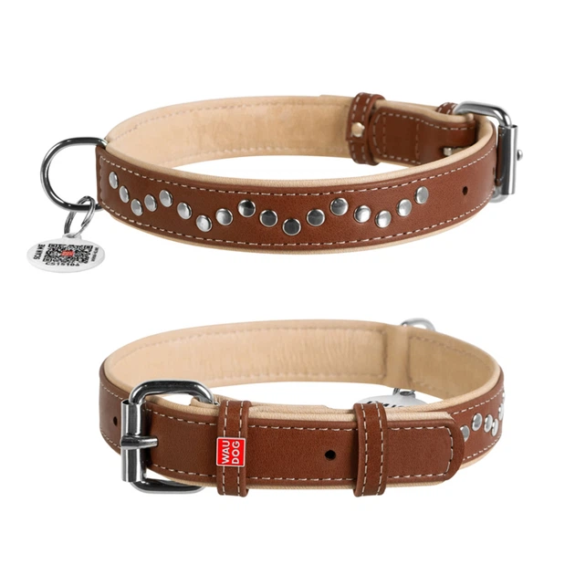 Амуніція Collar WAUDOG Soft Нашийник для собак шкіряний з QR паспортом, металічні прикраси, коричневий L (z7207)