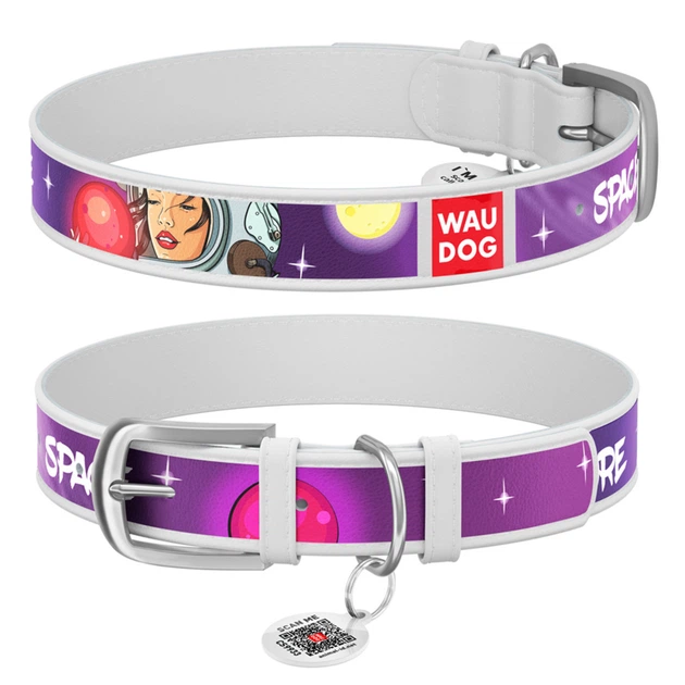 Нашийник для собак шкіряний WAUDOG Design з Більше космосу XL Ш 35 мм Дл 46-60 см білий