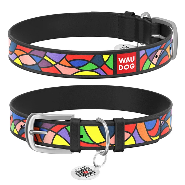 Нашийник для собак шкіряний WAUDOG Design з QR паспортом, Вітраж, Ш 35 мм, Д 46-60 см, чорний
