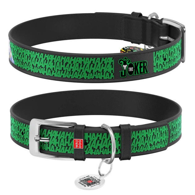 Нашийник для собак шкіряний WAUDOG Design з QR паспортом, малюнок Джокер ХL, Ш 35 мм, Дл 46-59 см чорний