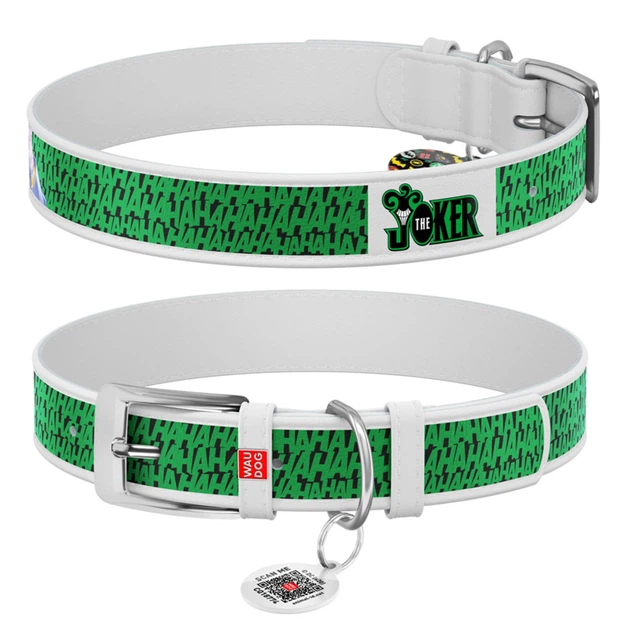 Нашийник для собак шкіряний WAUDOG Design з QR паспортом, малюнок Джокер ХL, Ш 35 мм, Дл 46-59 см білий