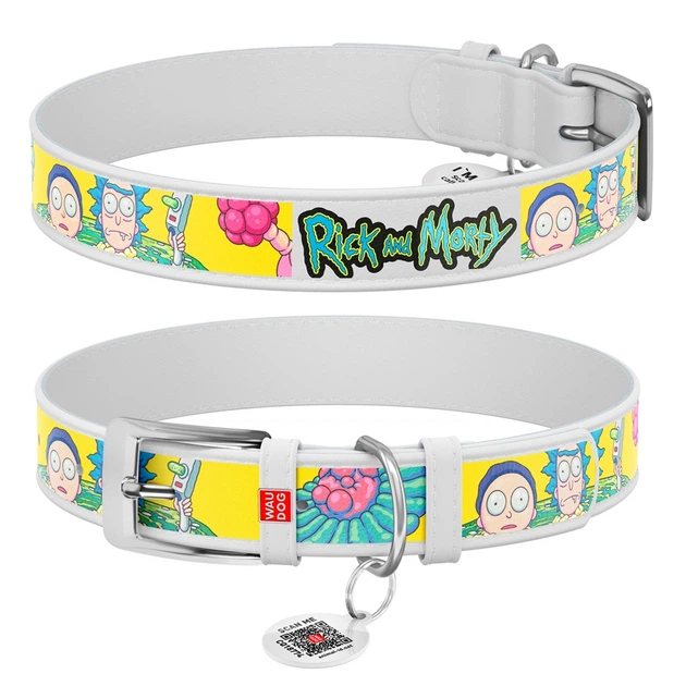 Нашийник для собак шкіряний WAUDOG Design з QR паспортом, малюнок "Рік і Морті 1"