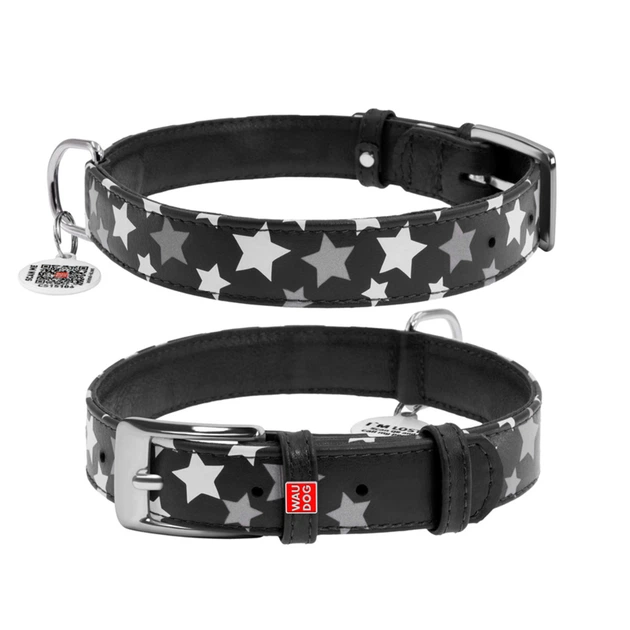 Ошейник для собак шкіряний WAUDOG Glamour з QR паспортом, візерунок "Зірочка", світлонакопичувальний/світловідбивний, L, Ш 2