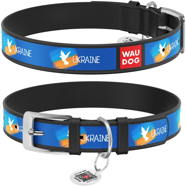 Нашийник для собак шкіряний WAUDOG Design з QR паспортом, малюнок "Прапор" Чорний 46-59 см 35 мм (3606-0229-01)