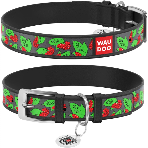 Нашийник для собак шкіряний c QR паспортом WAUDOG Design Калина XL 46-60 см х 35 мм Чорний (3606-0228-15)