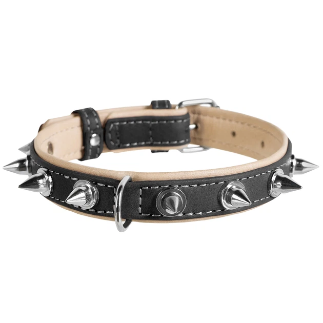 Шкіряний нашийник для собак WAUDOG Soft із шипами чорний верх 30-39 см 20 мм (7192)