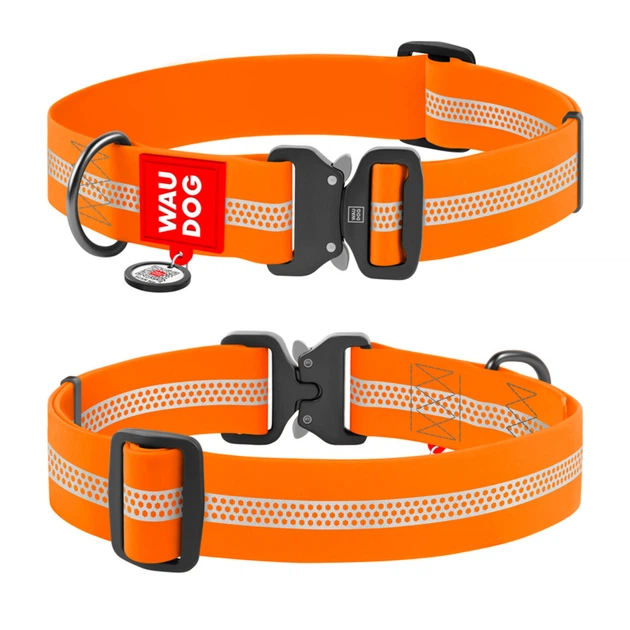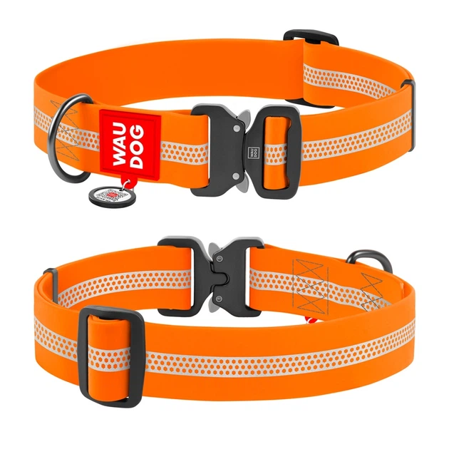 Нашийник для собак великих/гігантських порід WAUDOG Waterproof з QR-паспортом, помаранчевий, світловідбивний Collartex, мета