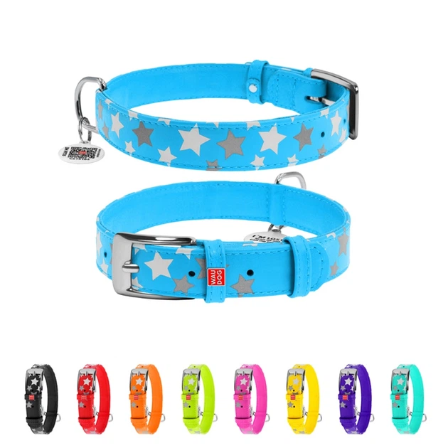 Нашийник для собак шкіряний WAUDOG Glamour з QR паспортом, візерунок "Зірочка", світлонакопичувальний/світловідбивний, L, Ш