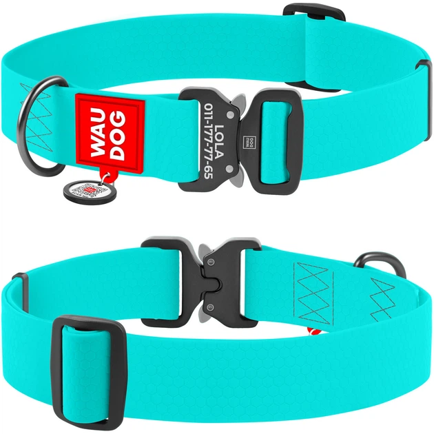 Нашийник для собак водостійкий WAUDOG Waterproof з QR-паспортом, світиться в темряві , металева