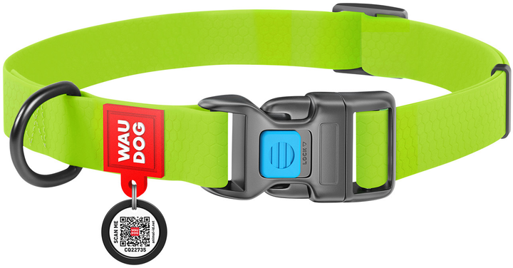 Нашийник для собак водостійкий WAUDOG Waterproof c QR паспортом пластикова пряжка-фастекс Ш 15 мм Дов 25-35 см Салатовий (27