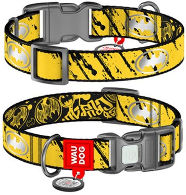Нашийник для собак нейлоновий WAUDOG Nylon з QR паспортом, світловідбивний, малюнок "Бетмен Ескіз", пластиковий фастекс, S,