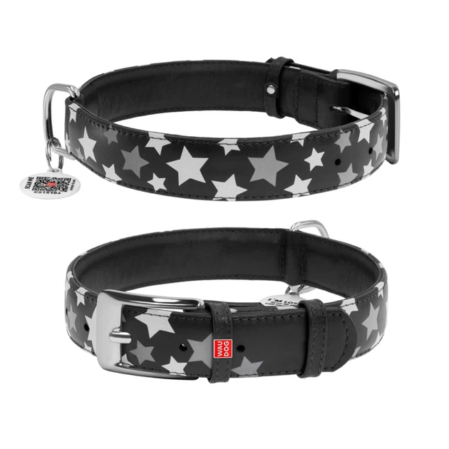 Нашийник для собак шкіряний WAUDOG Glamour з QR паспортом, візерунок "Зірочка", світонакоплювальний, Ш 35 мм, Дов 46-60 см с