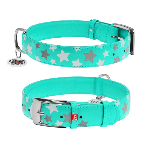 Нашийник для собак шкіряний WAUDOG Glamour з QR паспортом, візерунок "Зірочка", світлонакопичувальний/світловідбивний, XL, Ш