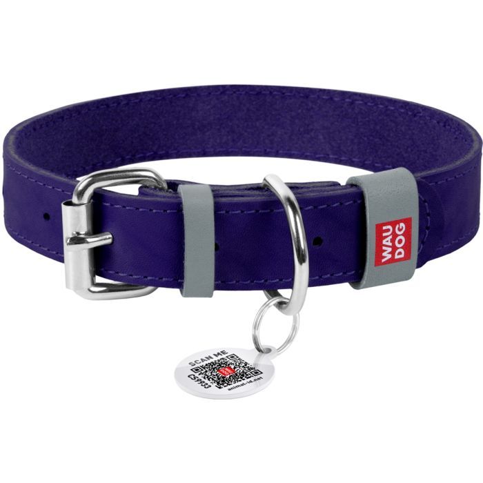 + 24 балів ITbox, Матеріал - натуральна шкіра, Ширина - 13 мм, Довжина - 53-63 см, з QR паспортом, для всіх порід собак, Колір - фіолетовий