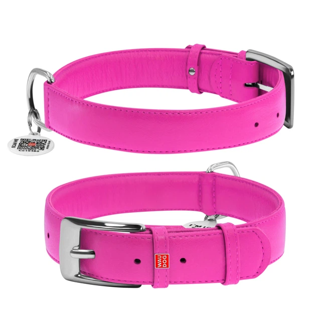 Нашийник для собак шкіряний WAUDOG Glamour з QR паспортом, без прикрас, XL, Ш 35 мм, Дов 46-60 см рожевий