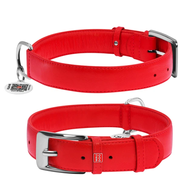 Нашийник для собак шкіряний WAUDOG Glamour з QR паспортом, без прикрас, Ш 35 мм, Дов 46-60 см червоний