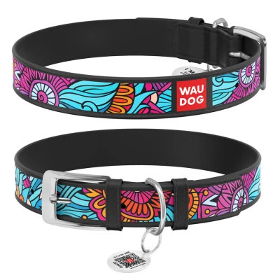 Нашийник для тварин WAUDOG Нашийник для собак шкіряний WAUDOG Design з QR паспортом, малю (37831)