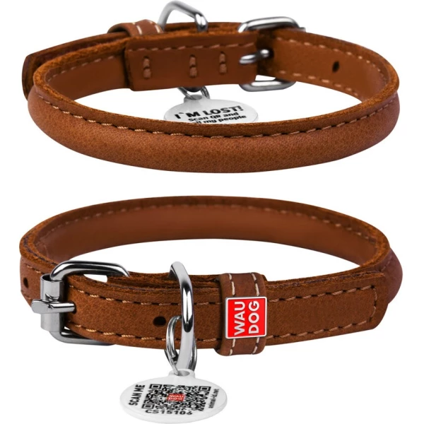 Нашийник для собак шкіряний WAUDOG Soft з QR паспортом, круглий, Д 13 мм, Дов 53-63см коричневий Акція!