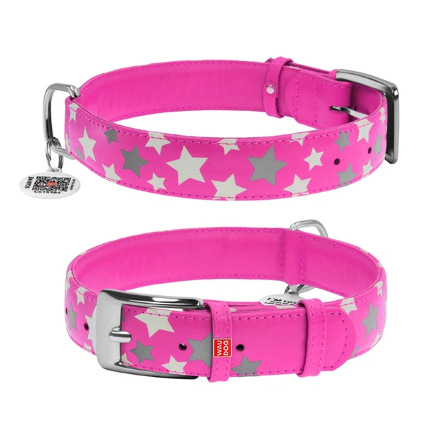 Нашийник для собак шкіряний WAUDOG Glamour з QR паспортом, візерунок "Зірочка", світлонакопичувальний/світловідбивний, XL, Ш