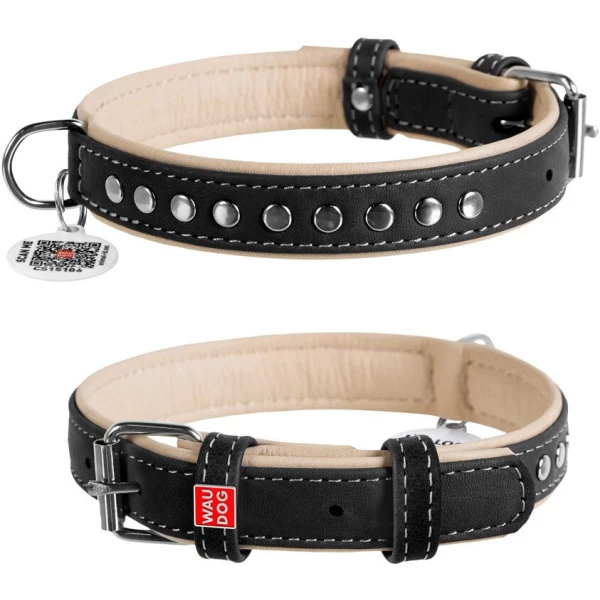 Нашийник для собак шкіряний WAUDOG Soft з QR паспортом, металічні прикраси, Ш 20 мм, Дов 30-39 см коричневий Акція!
