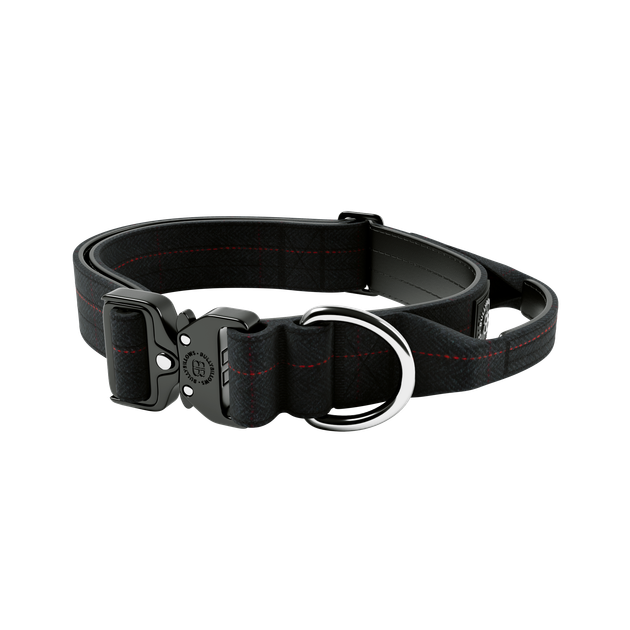 Бойовий широкий нашийник для собак з чутливою шкірою BullyBillows Tweed Combat Collar Handle 5 cm M: 50 мм, ОШ 43-58 см Чорн